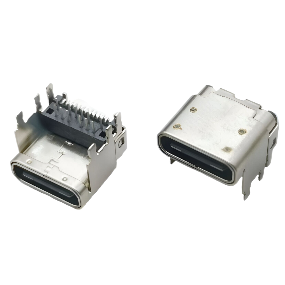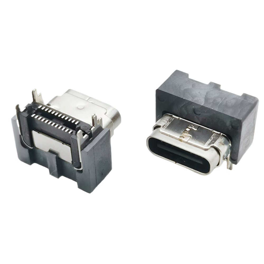 TYPE C 單排24P母座 沉板式免焊型連接器 帶雙耳螺絲孔